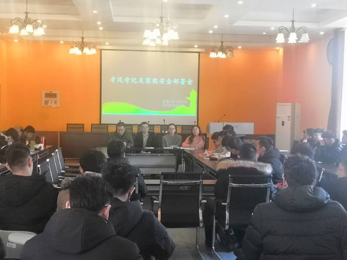 为更好地迎接期末考试,增强同学们的诚信意识并部署假期安全工作,太阳成集团tyc9728于12月31日在机电院馆218召开了考风考纪及安全部署会。公司王荣优、曲季、吕勇、纪全菊四位老师出席会议,大一至大三各班班长参加了本次会议。